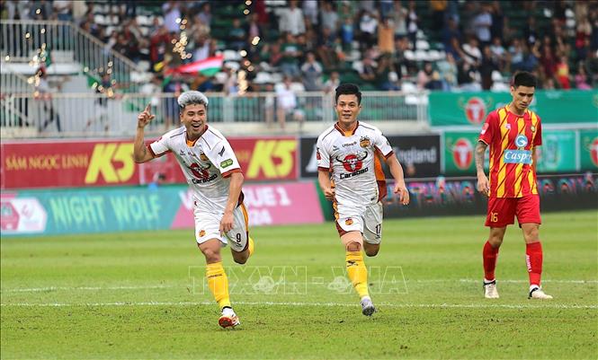 Trong hiệp một, đội chủ nhà chỉ tung ra hai cú sút xa không gây nguy hiểm, trong khi Nam Định tạo ra nhiều cơ hội rõ rệt. Caio Cesar đánh đầu vọt xà ở phút 10, Percy Tau dứt điểm chệch cột ở phút 33, và Hoàng Anh bỏ lỡ cơ hội tốt nhất khi không thắng được thủ môn Kampol ở tình huống đối mặt phút 41.