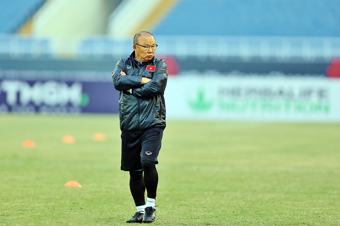 HLV Kim Sang Sik tranh thủ thời gian tổ chức rút kinh nghiệm ngay trên sân tập cho nhóm các cầu thủ đá chính trong trận thắng Thái Lan 2-1. Nhà cầm quân người Hàn Quốc mong muốn giảm thiểu các sai số cho trận đấu quyết định ngôi vô địch. Ảnh: VFFThầy trò HLV Kim Sang Sik hướng tới trận tái đấu với đội tuyển Thái Lan tại chung kết lượt về ASEAN Cup 2024 với tinh thần tích cực và sự chuẩn bị chủ động nhất.Do vừa trải qua thi đấu và di chuyển từ Hà Nội sang Bangkok nên buổi tập chỉ diễn ra với khối lượng nhẹ.